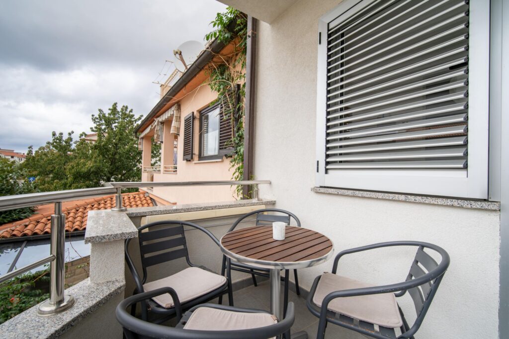 Kategorija , boravak i kuhinja su u jednoj prostoriji, broj dodatnih ležajeva (u boravku, blagovaoni, kuhinji): 2, površina (boravka, blagovaone ili kuhinje) 18 m2, balkon, 5 m2, klima uređaj, dozvoljeno pušenje u apartmanu, pogled na: zelenilo (soba), mirnu ulicu (dnevni boravak)